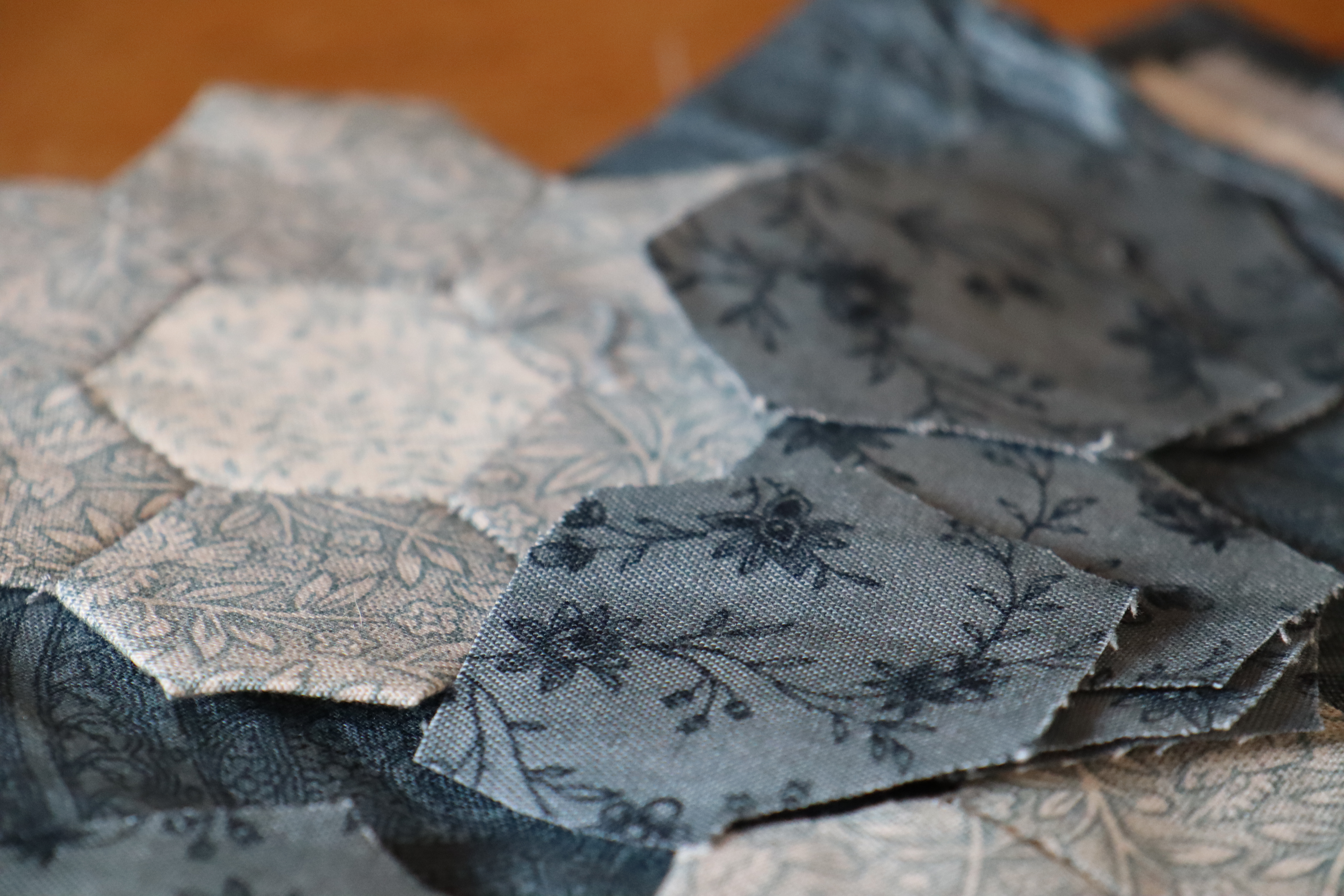 First of all I have some hexagons left over from a project I made last year so want to put them to good use. First I decided to make some contrasting hexagons and then I decide whether to make it into a quilt or a cushion.